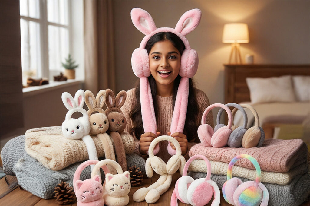 Cute Jumping Rabbit Earmuffs with ChuChu Sound — Warm • Soft • Fun • Kawaii!