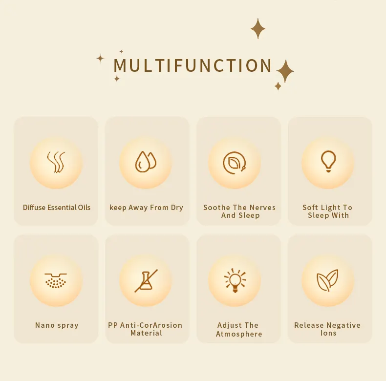 • 💦 Ultrasonic Mist Technology – Produces superfine mist for air hydration + aromatherapy.