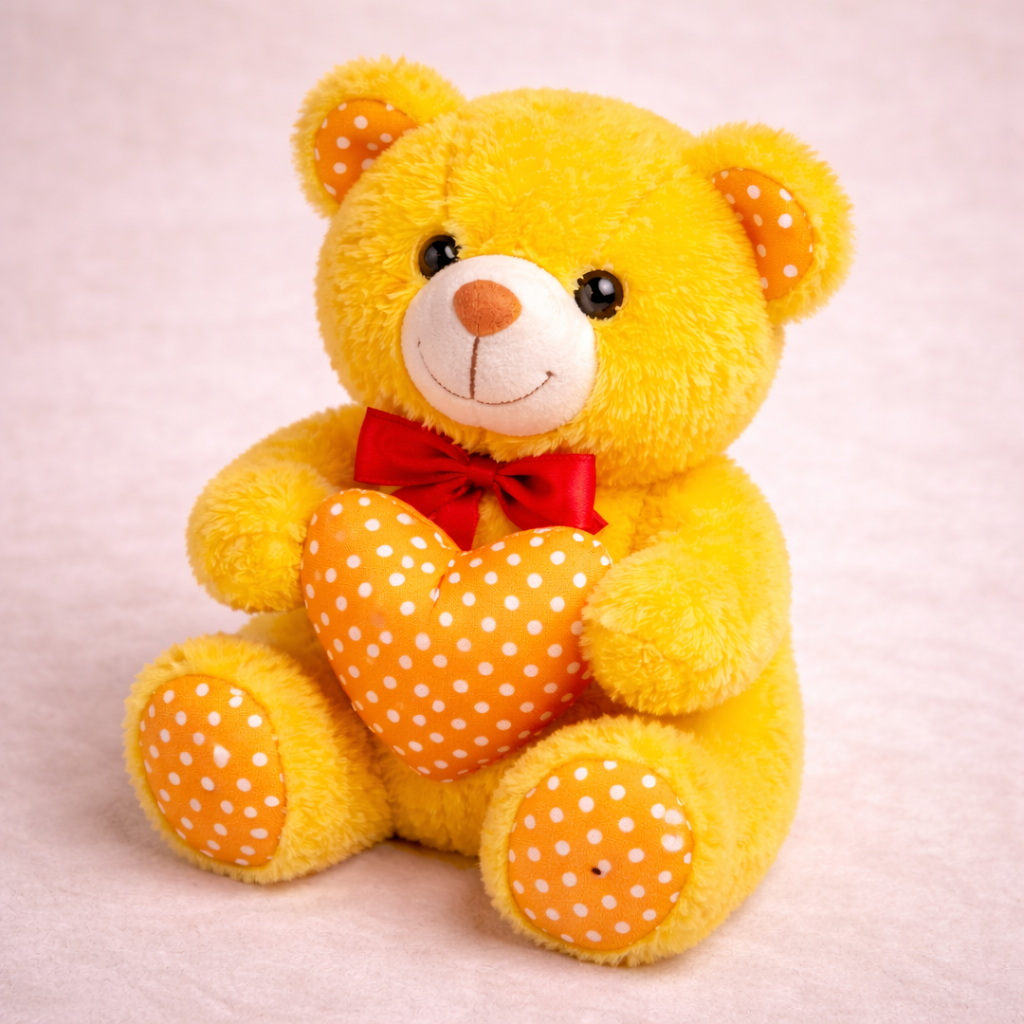 Available in two attractive colors – Pink and Yellow, this teddy bear features a cute heart design with polka dots, making it an ideal choice for Valentine’s Day, birthdays, anniversaries, surprise gifts, or romantic gestures.